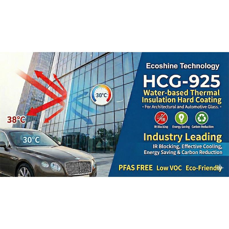 HCG-925 is an industry-leading water-based heat-insulating hard coating developed by Ecoshine Technology . Specifically engineered for architectural and automotive glass, it blocks infrared radiation to significantly reduce air conditioning energy consumption